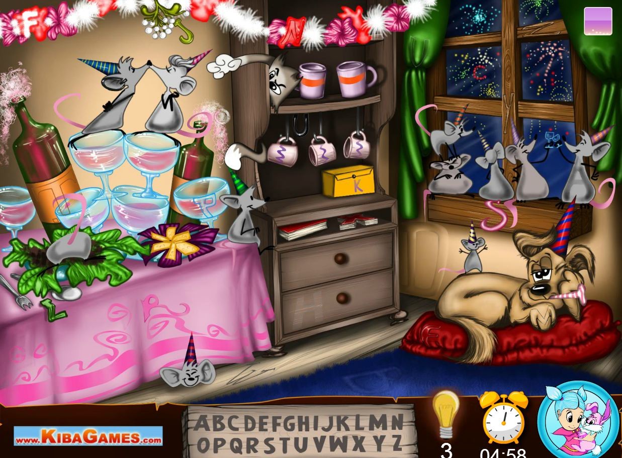 Podczas zabawy Sylwestrowej w pomieszczeniu ukryły się litery. Twoim zadaniem jest je wszystkie znaleźć w jak najkrótszym czasie.