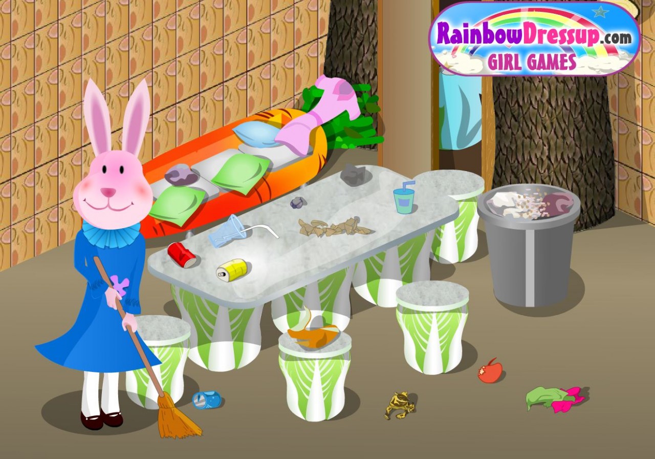 Pani królikowa chce dokonać ostatnich zabiegów związanych ze sprzątaniem. Pomóż jej szybko ogarnąć bałagan.