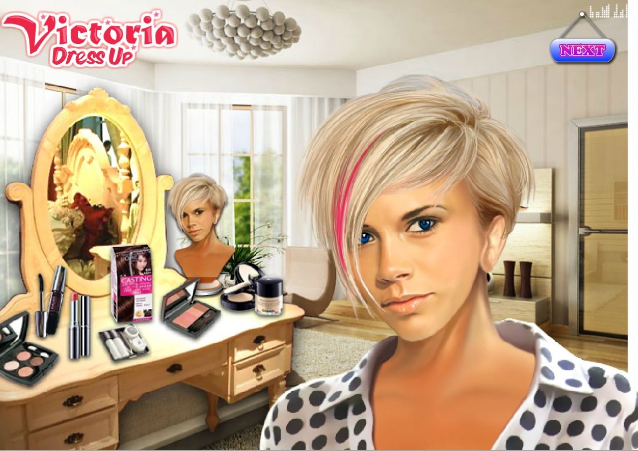 Zadbaj o właściwy makijaż Victorii Beckham. Dobierz odpowiednie kosmetyki i ozdoby. Spraw, by celebrytka wyglądała świetnie.