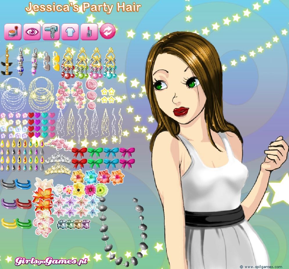 Przygotuj dziewczynę do małej imprezki, robiąc jej odpowiedni makijaż oraz dobierając właściwe ozdoby i dodatki. Spraw, by prezentowała się świetnie.