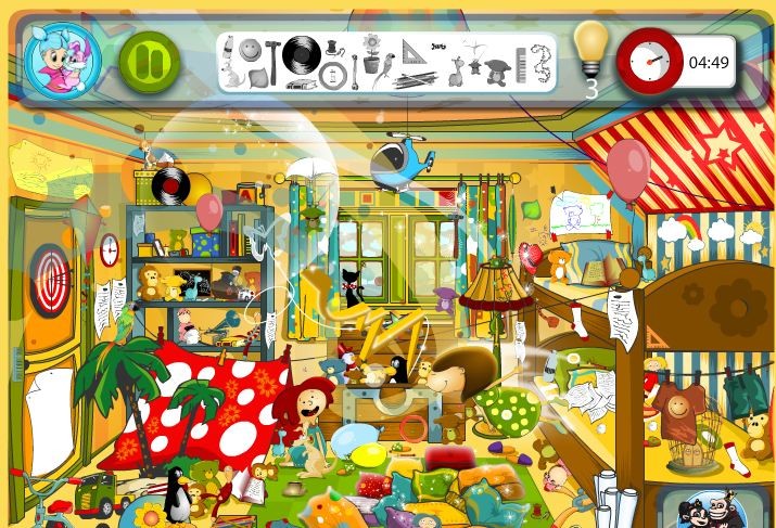 Znajdujemy się w zabałaganionym pokoju. Muismy odnaleźć przedmioty, które wyświetlone są na górze. Powodzenia!