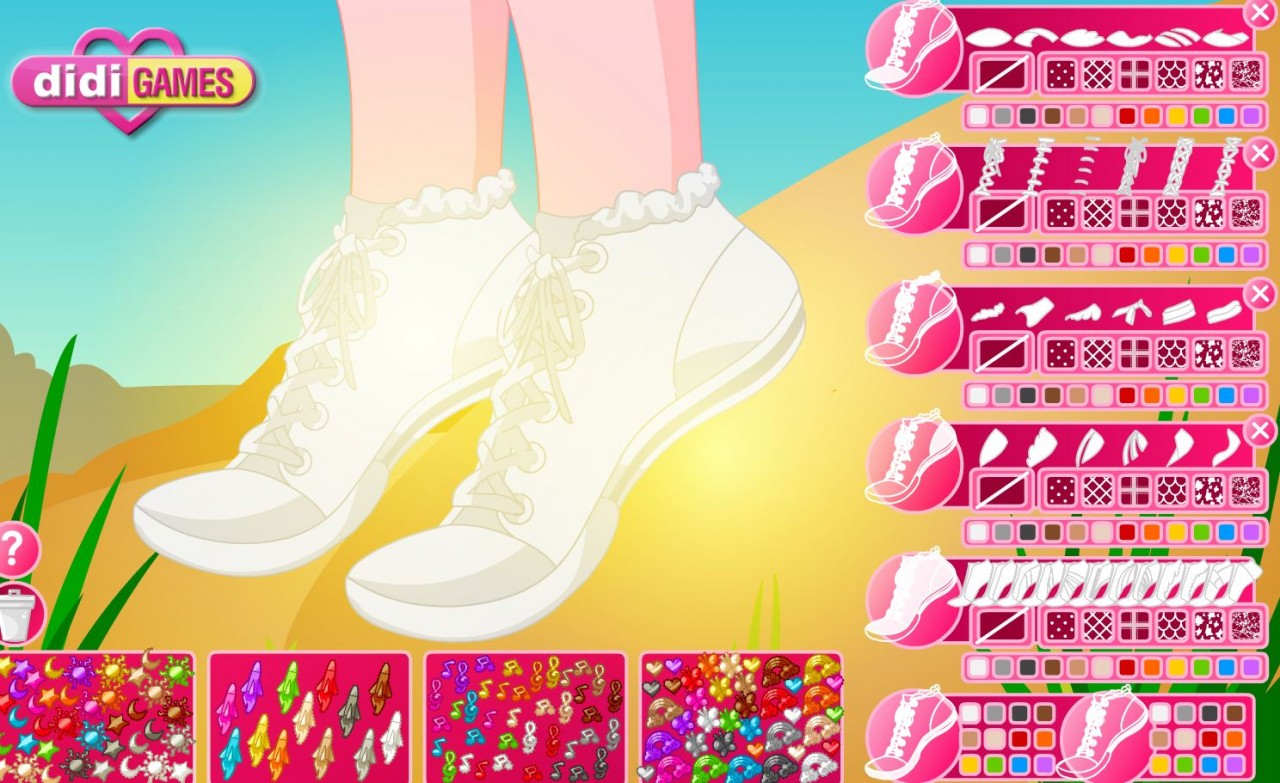Naszym zadaniem jest stworzyć fajny wzór butów dla dziewczyny. Dopasuj tak kolory i wzorki, by prezentowały się świetnie.