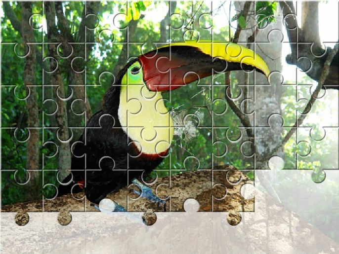 Tym razem pora na puzzle. Musimy w jak najszybszym czasie ułożyć określony obrazek przedstawiający tukana żółtogardłego.