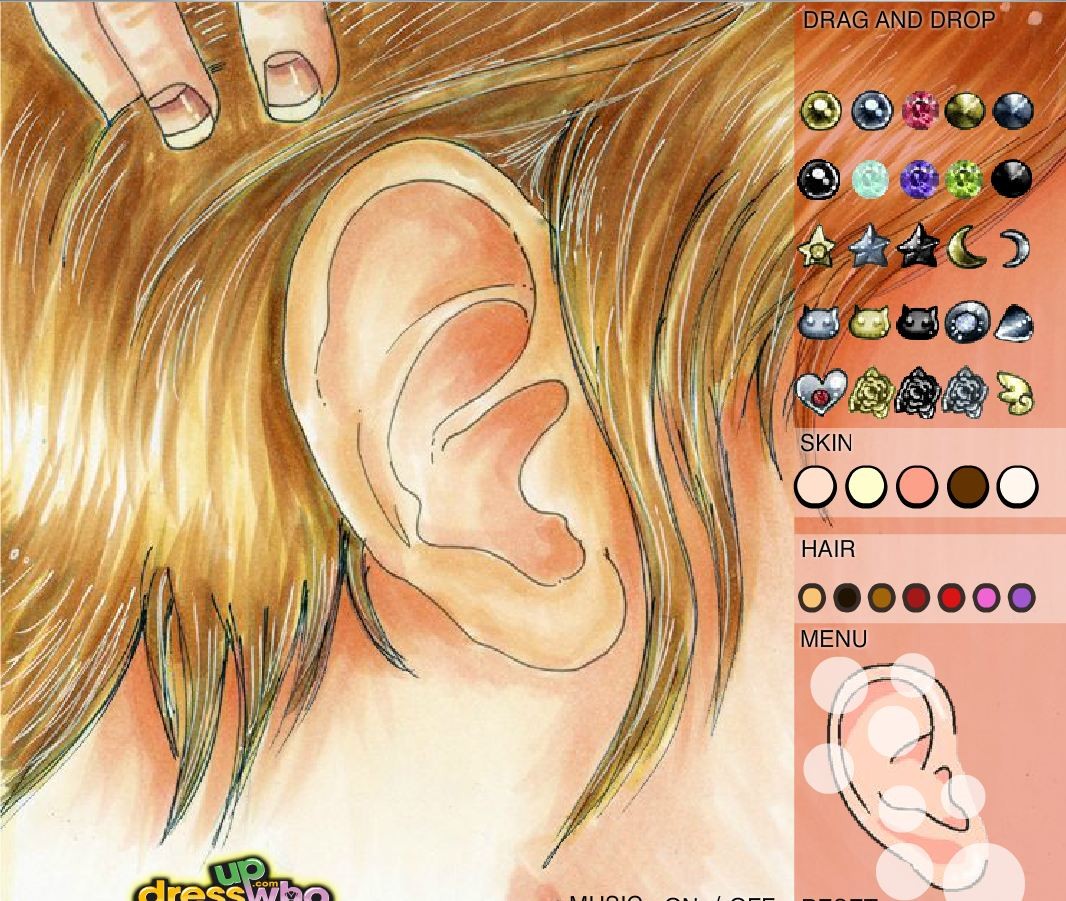 Tym razem trochę nietypowa czynność - musimy zaopiekować się uchem, a konkretnie dopasować do niego odpowiednie kolczyki z ozdobami.