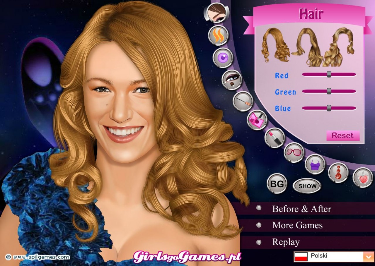 Zrób odpowiedni makeup amerykańskiej aktorce Blake Lively. Dopasuj odpowiednie ozdoby i dodatki, by prezentowała się idealnie.