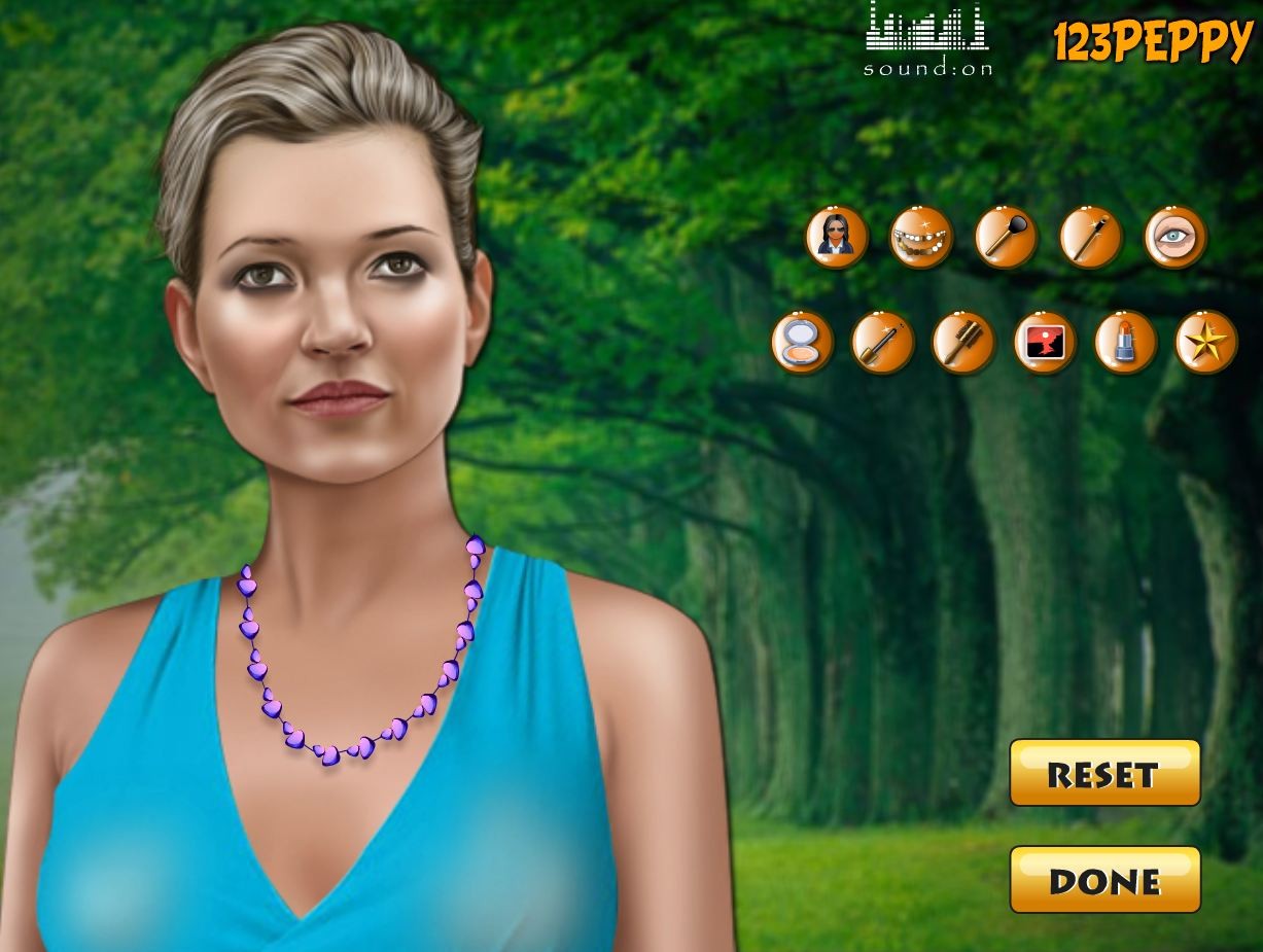 Odpowiedni makijaż musimy tym razem zrobić Kate Moss. Użyj w odpowiedni sposób kosmetyków i ozdób, by ta słynna modelka wyglądała idealnie.