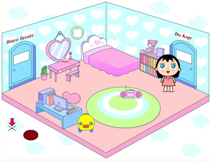 Znajdujemy się w pokoju uroczej dziewczynki. Odkryj ciekawe zakątki pomieszczenia oraz zobacz, co można tam robić!