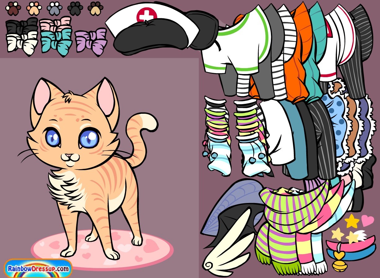 Opiekunka tego słodkiego kotka zwariowała na jego punkcie! Codziennie zmienia mu ubranka i dodatki, jednak dziś nie może tego zrobić, dlatego prosi Ciebie o pomoc. Zajmiesz się tym kotkiem?