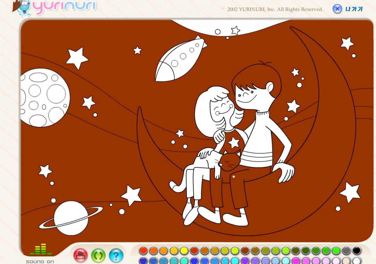 Co powiesz na scenkę na księżycu? Zapowiada się fajna zabawa. Twoim zadaniem będzie pokolorowanie tego rysunku tak, by to, co przedstawia, wyglądało super.