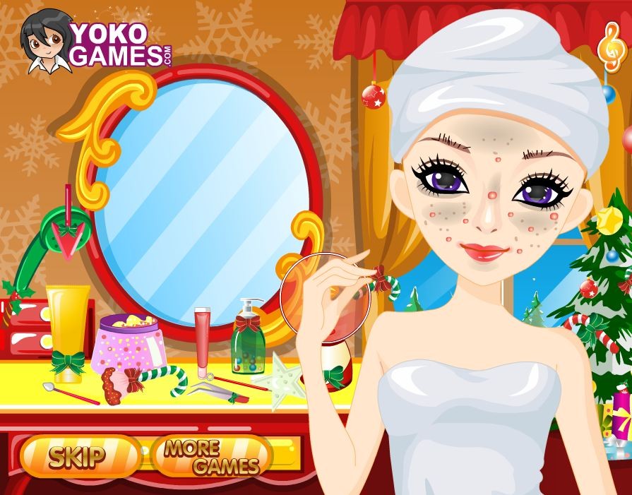 Pani Mikołajkowa nie zdążyła jeszcze roznieść prezentów, bo dostała wysypkę na twarzy. Koniecznie temu zaradź, zrób jej super maseczkę oczyszczającą, by jej twarz była piękna.