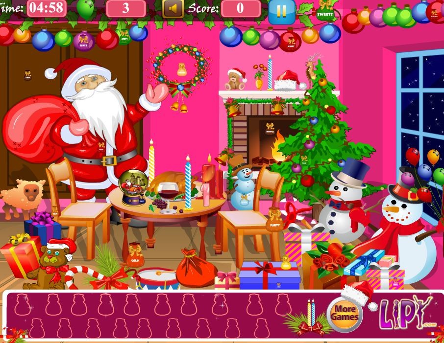 Trwa wielka przedświąteczna zawierucha! Mikołaj znajduje się w stosie prezentów dla grzecznych dzieci. Pomóż mu odnaleźć właściwe prezenty, by nie spóźnił się z ich rozniesieniem.