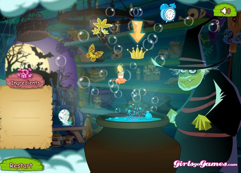 Stwórz własny eliksir piękności. Pomóż tej wiedźmie. Pomysł, jakie składniki stworzą ten eliksir i je wybierz, zamieszaj. Przekonaj się, czy wiedźma przemieni się w ślicznotkę..