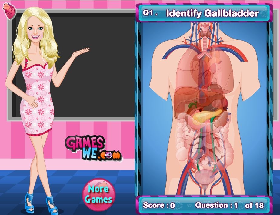 Barbie jest w szkole i po świątecznej przerwie nie przygotowała się do zajęć. Pech chciał, że została wezwana do odpowiedzi z biologii.. Pomóż dziewczynie wybrnąć z tej sytuacji i podpowiedz jej, by mogła dostać dobrą ocenę.