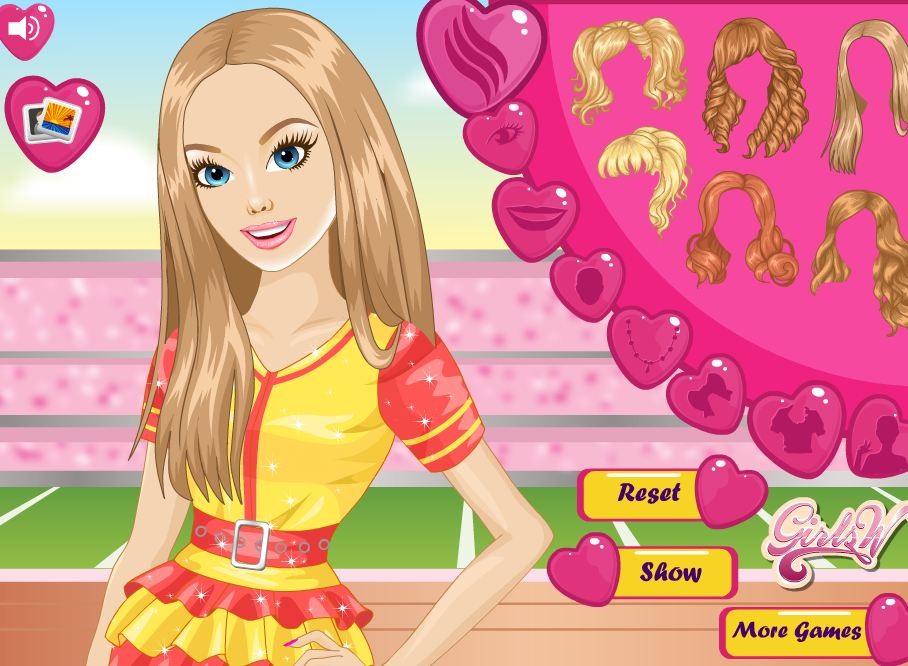 Ta słodka cheerleaderka za chwilę wybiegnie na boisko, na którym będzie dopingować swoją ulubioną drużynę sportową, dlatego przygotuj ją do tego momentu. Zrób jej perfekcyjny makijaż i dobierz do niego pasujący strój.