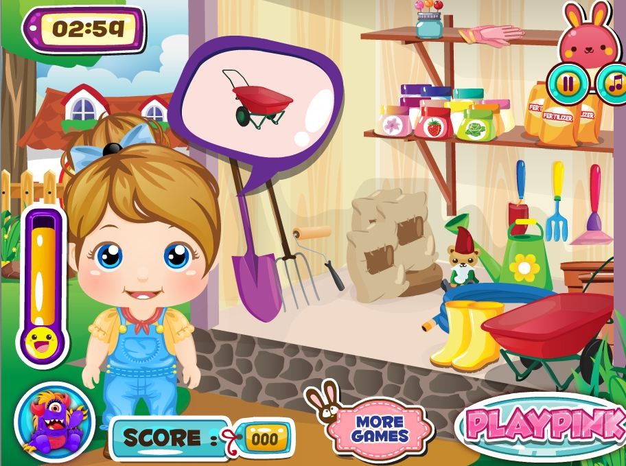 Małolata ma zamiar wybrać się na ogródek i rozpocząć wszelkie wiosenne przekopki. Potowarzysz jej w tej pracy, znajdźcie wszystkie potrzebne przyrządy i wyruszcie na ogródek.