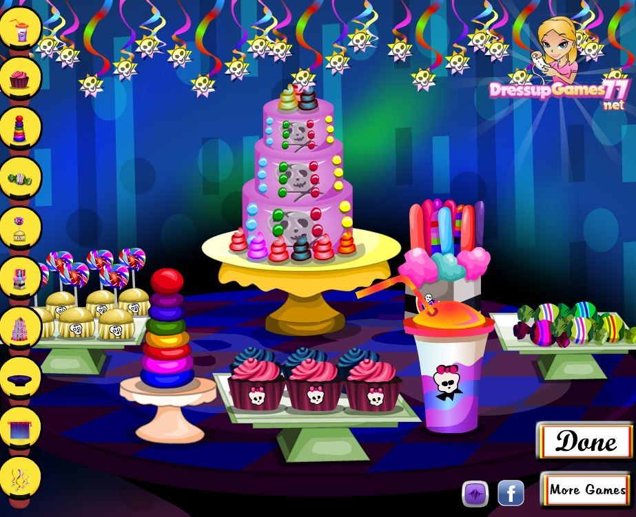 Ktoś z ekipy Monster High obchodzi urodziny, z tej okazji zostanie zorganizowana impreza urodzinowa. Twoim zadaniem będzie ustroić stół, na którym mają pojawić się same słodkie pyszności. Do dzieła!