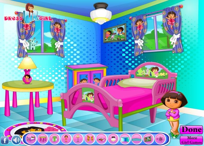 Dora zapragnęła miany swojego wystroju w sypialni. Czy możesz jej pomóc w wielkiej metamorfozie pokoju? Wyrzuć kilka rzeczy, które zastąpisz nowymi, ładnymi meblami i ozdobami. Spraw, że jej pokój będzie wyglądał stylowo i nowocześnie.