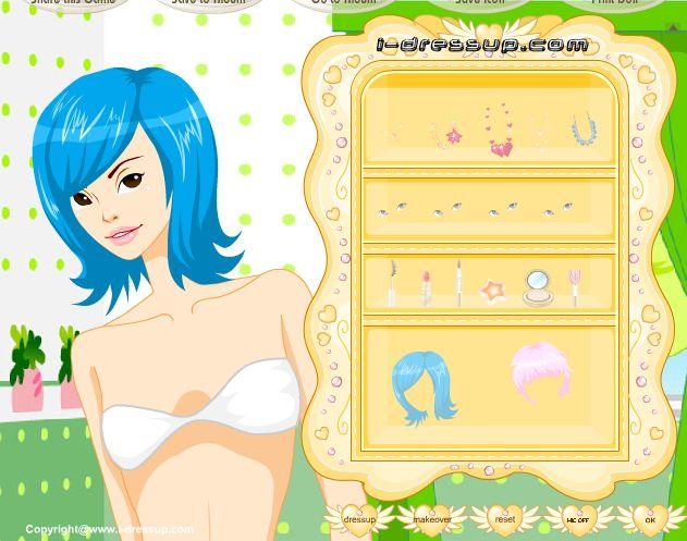 Nasze zadanie polega na dobraniu odpowiednich ozdób i stworzeniu idealnego makijażu dla niebieskowłosej dziewczyny oraz ubraniu jej w odpowiednie ciuchy.