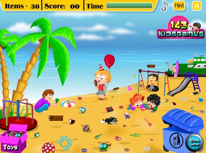 Przekonaj się, że sprzątanie wcale nie musi być nudne! Zobacz, jaki bałagan na plaży został po dzieciach. Do wieczora trzeba to uprzątnąć, dlatego nie zwlekaj i zacznij sprzątanie już teraz! Spraw, że na plaży będzie czysto.