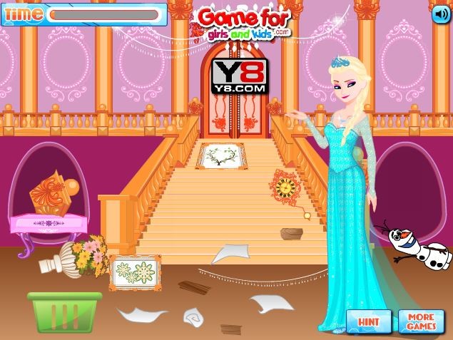 Urocza Elsa zaprasza Cię do siebie! Zapoznajcie się i przy okazji pomóż jej uporać się z bałaganem. Zacznijcie od sprzątania salonu, spieszcie się, bo sprzątanie jest na czas! Sprawcie, że cały dom będzie czysty!