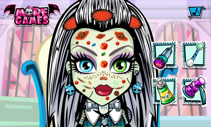 Bohaterka Monster High ma infekcję skóry twarzy. Musisz koniecznie temu zaradzić i użyć specjalnych kosmetyków, które załagodzą tą infekcję i sprawią, że twarz dziewczyny będzie piękna.