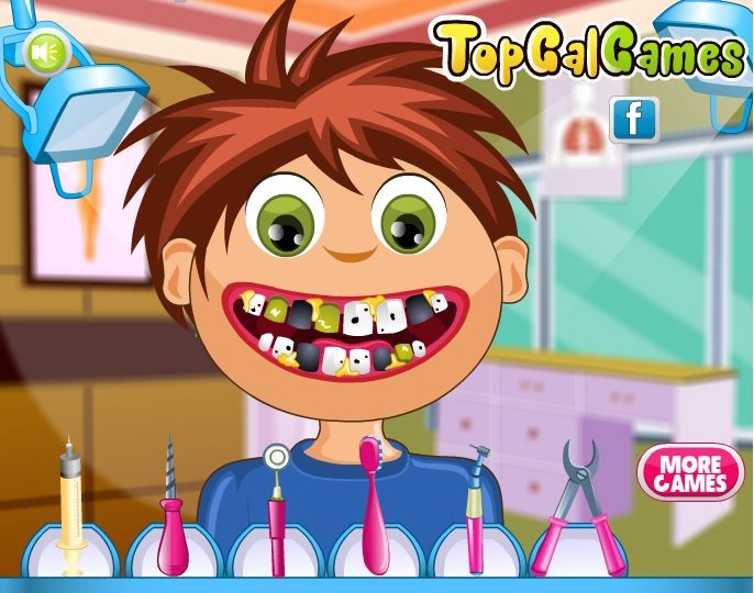 Tylko spójrz na zęby Joego. Z łatwością można stwierdzić, że coś z nimi nie tak. Joe zapewne znajdł za dużo słodyczy, a teraz cierpi.. Zabierz go do gabinetu i koniecznie wylecz jego zęby!