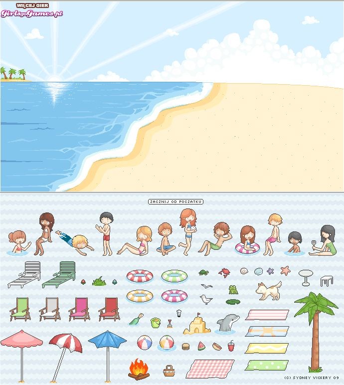 Wieczorem ma odbyć się imprezka na plaży. Twoim zadaniem będzie obmyślić wstępny plan imprezy oraz zadbać o wystrój.. Juz teraz porozstawiaj leżaki i inne akcesoria na plaży, by impreza mogła się udać.