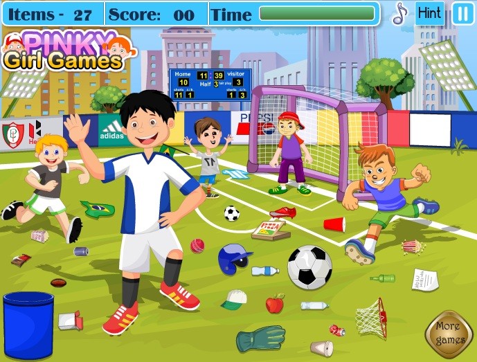 Jak zwykle po meczu zostało wiele śmieci na boisku.. Za chwilę kolejny mecz, dlatego ten bałagan trzeba będzie szybko uprzątnąć. Czy możesz się tym zająć? Spraw, że na boisku znów będzie porządek.