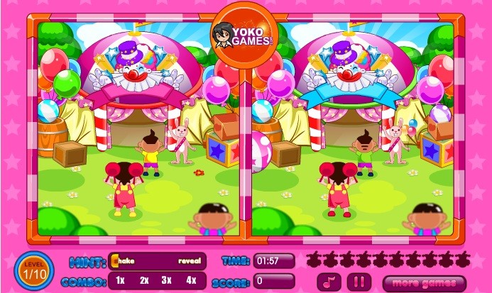 Tylko w cyrku czeka na Ciebie wiele atrakcji! Pierwszym zadaniem będzie wyłapanie różnic na ukazanym obrazku. Porównaj dwa obrazki i spróbuj znaleźć wszystkie różnice! Pamiętaj, że grasz na czas!