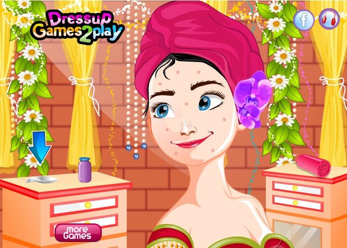 Księżniczka ma kiepski humor, bo spojrzała w lustro i zobaczyła kilka krostek na swojej twarzy.. Przywróć uśmiech księżniczce i spraw, że znów będzie lśnić! Pozbądź się wszystkich niedoskonałości.