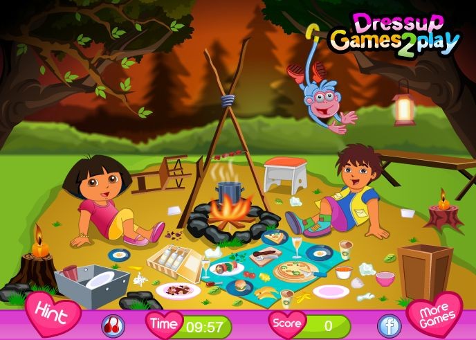 Przyjaciele urządzili sobie obóz w lesie, bawią się świetnie przy ognisku i nie mają już siły, by posprzątać cały bałagan. Pomóż dzieciom w porządkach!
