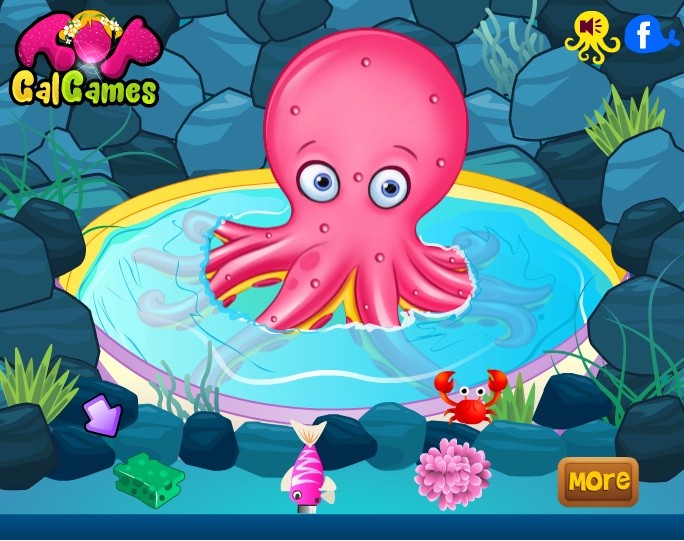 Ośmiornice uwielbiają, kiedy ktoś się nimi zajmuje. Ty dziś poświęć swój czas uroczej ośmiornicy, która znowu się ubrudziła i wymaga kąpieli. Wykąp ją i spraw, że dzięki temu będzie czysta i zadowolona.