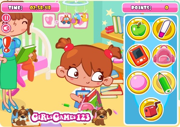 Ta dziewczyna bardzo nie chce spakować się do szkoły. Jednak kontroluje ją w tym mama. Gdyby jednak udało się uniknąć wzroku mamy można zrobić wiele ciekawych rzeczy.