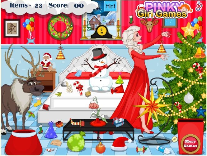 Święta to piękny i radosny czas... gorzej jest przed świętami, kiedy trzeba zrobić generalne porządki. Pomóż tej dziewczynie uporać się z jej pokojem.