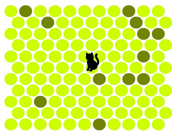 Czarny kot próbuje uciec z planszy, ale uwaga! Może on się poruszać tylko po jasnych polach. Twoim zadaniem jest zamalowanie jego drogi na ciemny kolor i uniemożliwienie ucieczki.