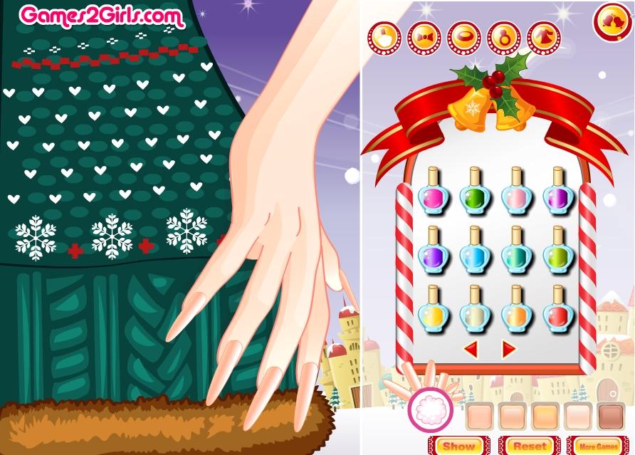 Wybierz jeden z dostępnych lakierów, który pojawi się na paznokciach dziewczyny. Możesz wybrać jednolity kolor lub skorzystać z ciekawych lakierów do paznokci. W kolejnych zakładkach warto wybrać świąteczne ozdoby i naklejki, którymi jeszcze bardziej upięknisz pazurki! Zagraj w inne gry dla dziewczyn!