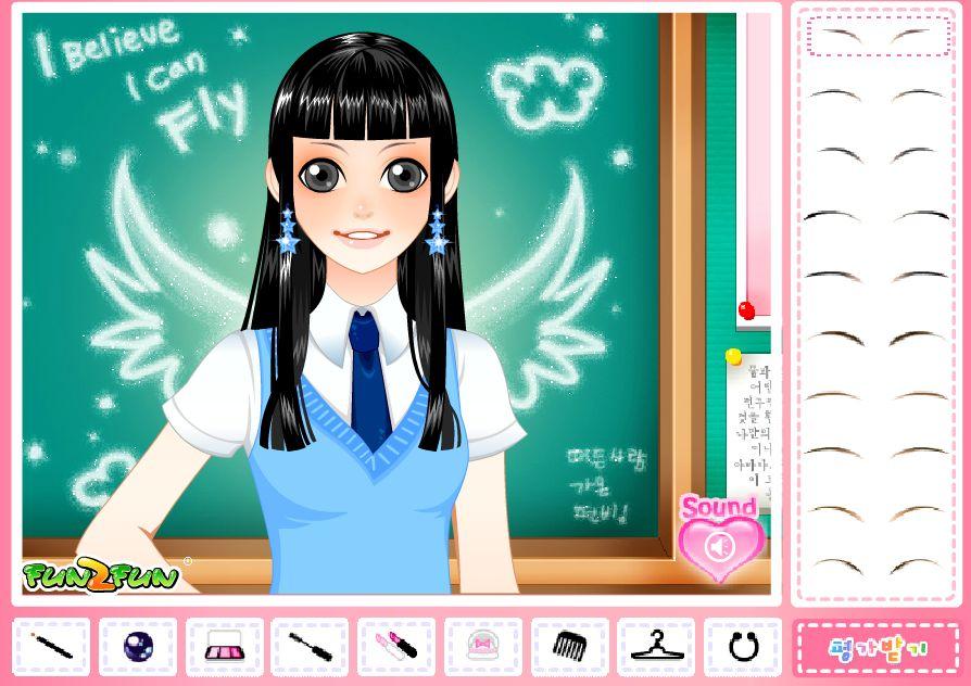Dziewczyna stoi przy tablicy w trakcie przerwy i próbuje zamieć się w modelkę. Koleżanki natomiast robią jej makijaż. Jednak nie wiedzą jak się za to zabrać. Pomóż im w tym.