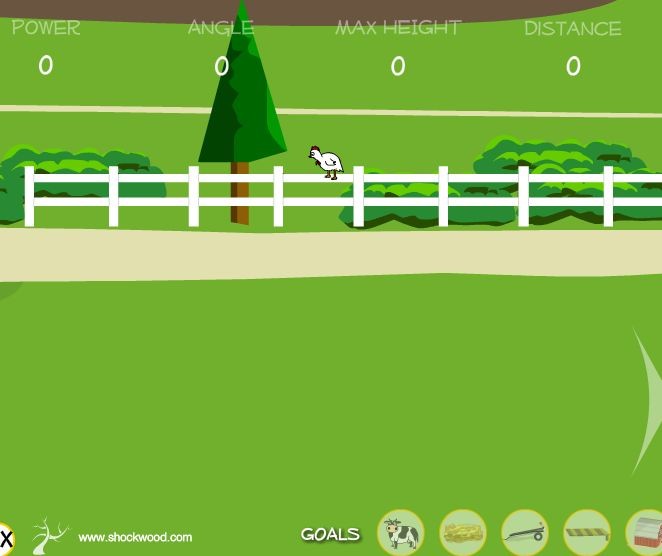 Strzelamy kurczakiem, aby trafić w cele oznaczone w kółkach w prawym dolnym rogu. Musimy wykazać się nadzwyczajną zręcznością i przewidywalnością.