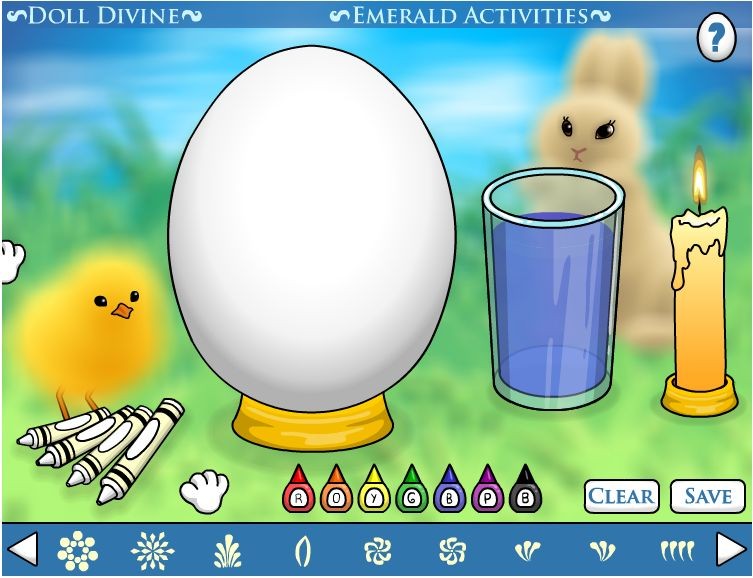 W tej świątecznej grze możesz stworzyć bardzo ładną, kolorową pisankę z różnymi wzorami. Nakładając na jajko wzory musisz każdorazowo zamaczać jajko w wybranym kolorze. Na koniec zbliżasz jajko do świeczki i otrzymujesz pisankę z różnokolorowymi wzorami.