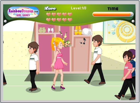 Dziewczyna przemieszcza kolejne partie uczelnianego korytarza w celu sparaliżowania wzrokiem zakochanych chłopaków. Pomóż jej zebrać jak największe żniwa.