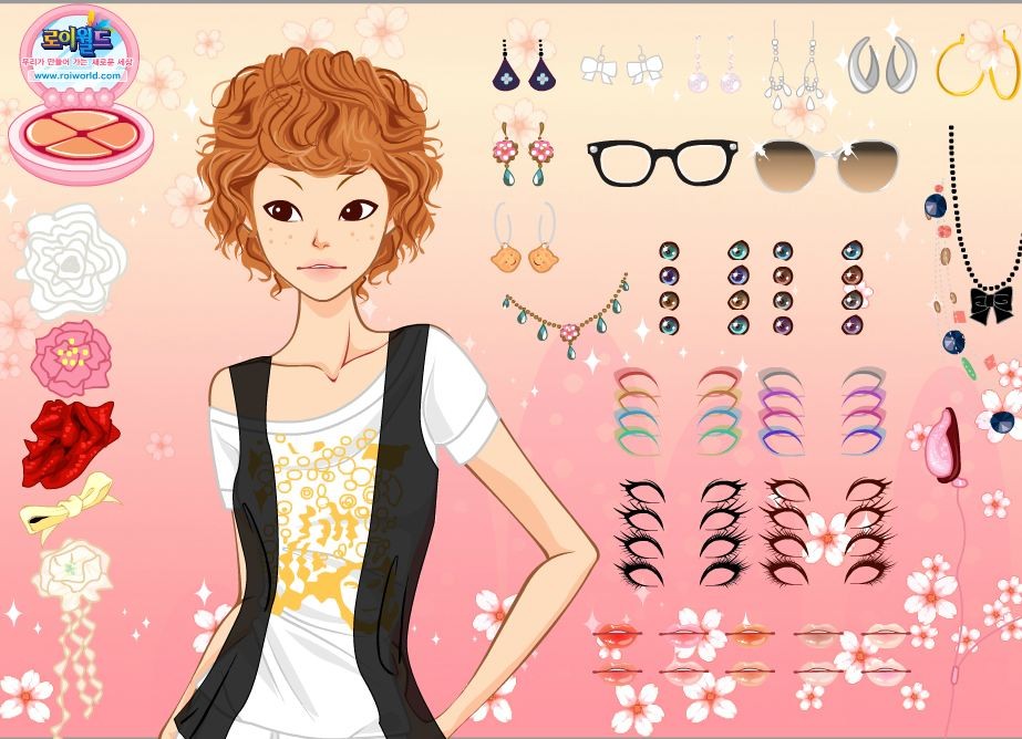Zadbaj o zewnętrzny wygląd dziewczyny z wybujałą fryzurką. Dopasuj dla niej fajne ozdoby i dobierz ciekawe kosmetyki. Niech prezentuje się rewelacyjnie.