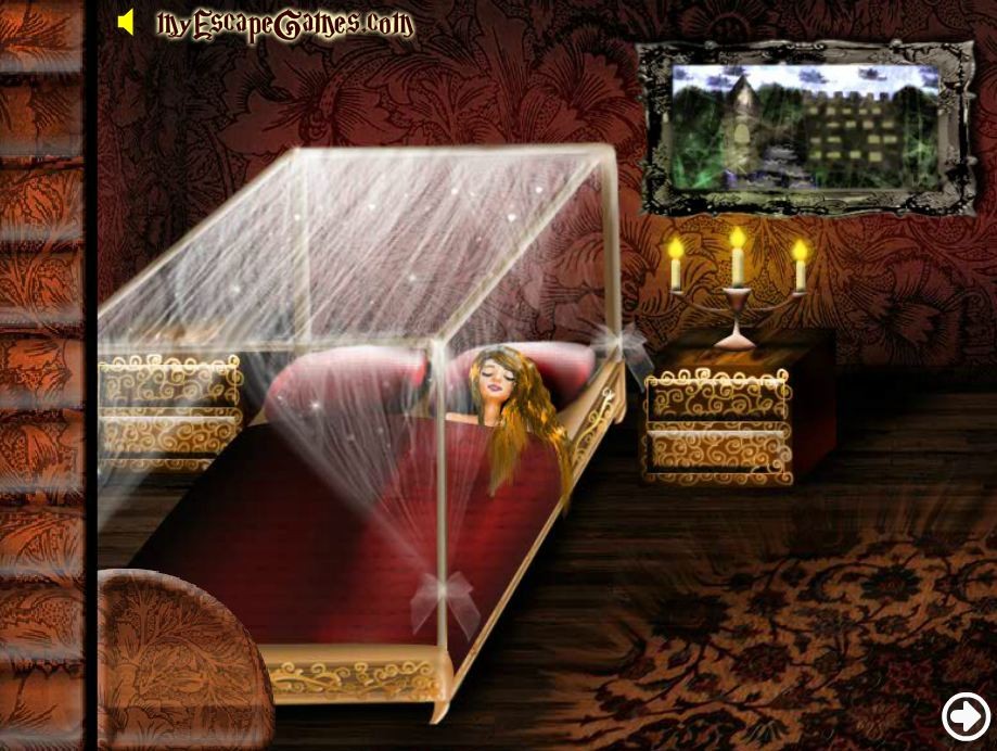 Gra logiczno-zręcznościowa. Twoim zadaniem jest odnaleźć ukryte przedmioty w pałacu, a następnie użyć ich do umożliwienia ucieczki śpiącej królewny.