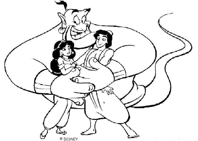 Kolorowanka inspirowana filmem animowym "Aladyn" z 1992 wyprodukonym przez studio Walta Disneya.