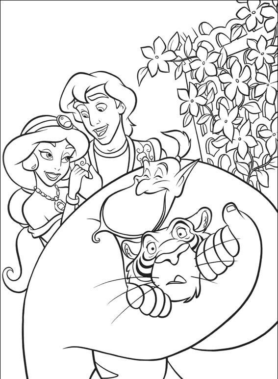 Kolorowanka inspirowana filmem animowym "Aladyn" z 1992 wyprodukonym przez studio Walta Disneya.