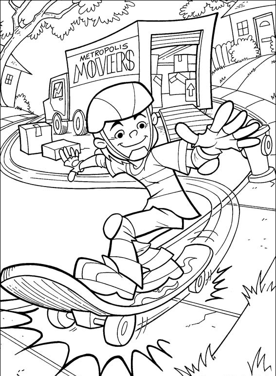 Kevin pokazuje umiejętności jazdy na deskorolce.