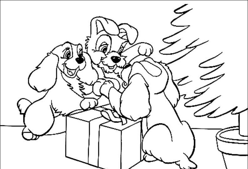 Tramp razem z innymi rozpakowuje prezent, pokoloruj obrazek i zobacz co jest mtam jeszcze.