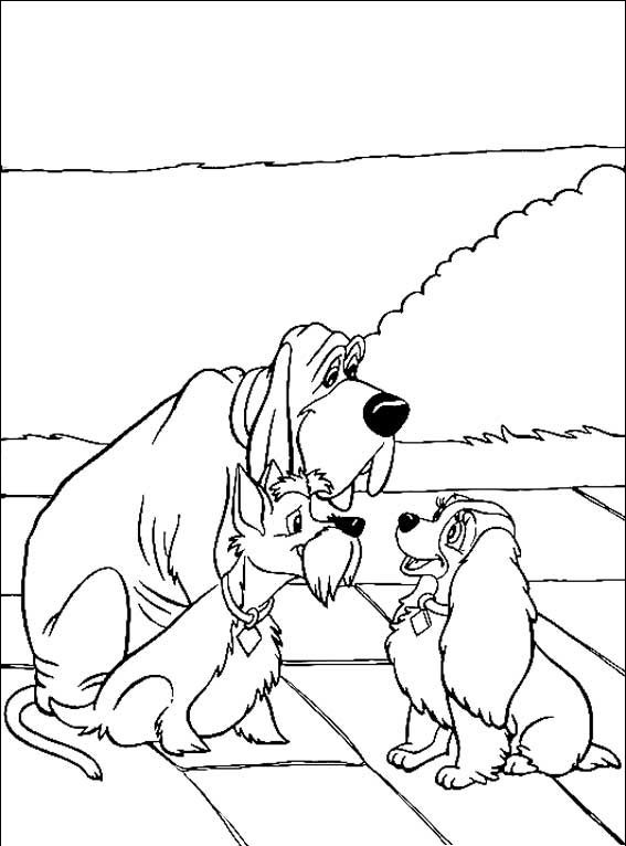 Przyjaciele Trampa poznają Lady są bardzo zadowoleni,pokoloruj ich i policz.