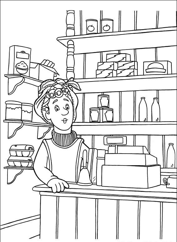 Sprzedawczyni w sklepie spożywczym z bajki Strażak Sam.