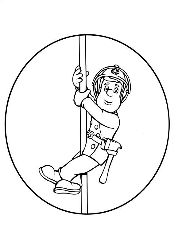 Strażak Sam zjeżdża po rurze.