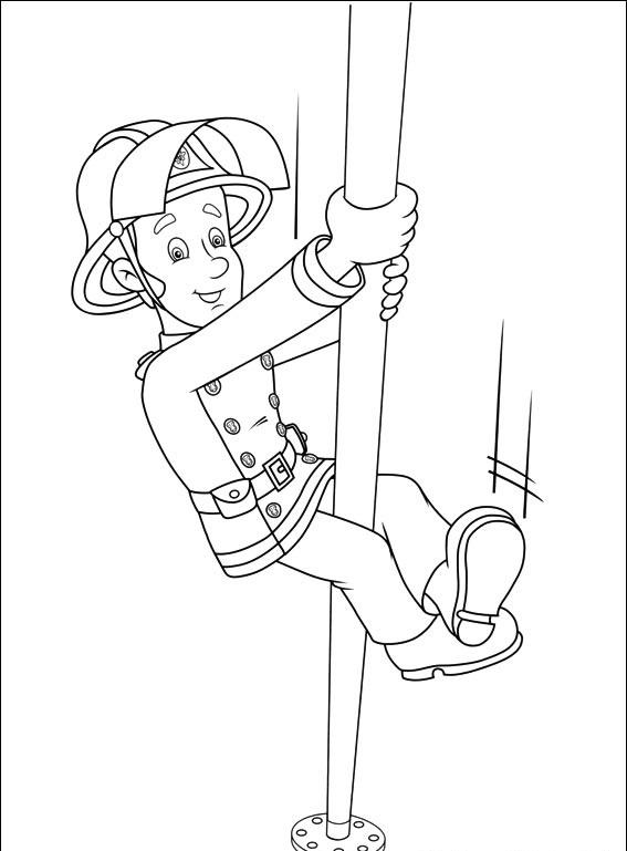 Kumpel strażaka Sama zjeżdża w dół.